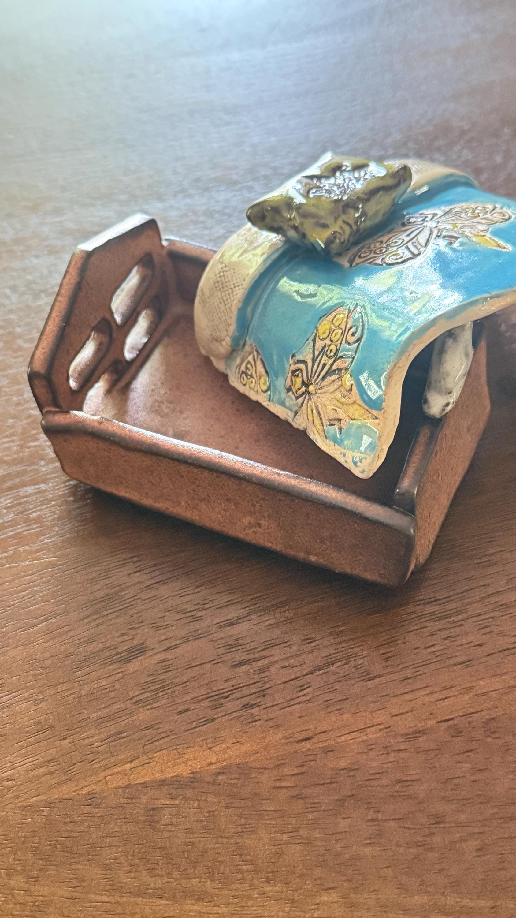 This ceramic bed box is both decorative and functional. This maybe used to store your jewelry or a worry doll box for kids